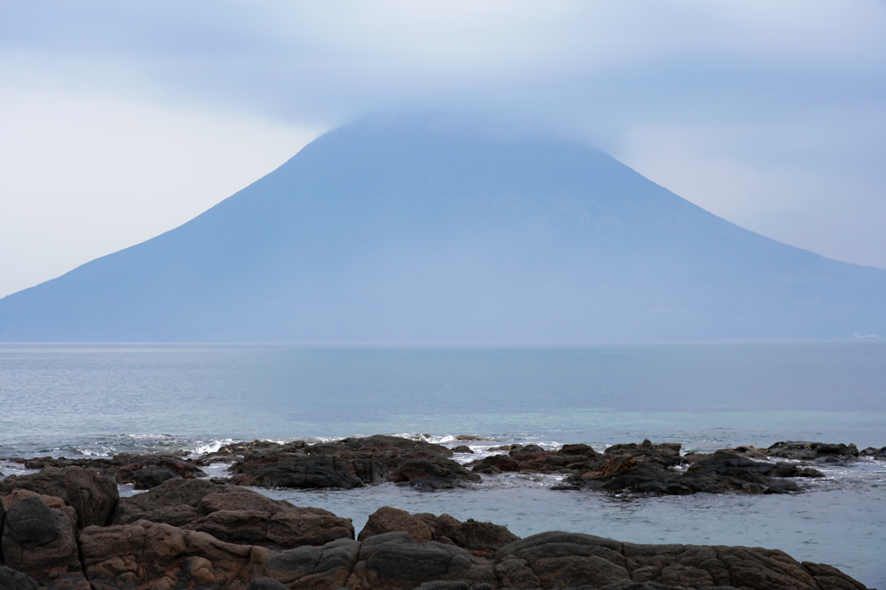 当日は天気に恵まれず開聞岳も煙っていますが、それでもこの迫力。海の上に単独峰がドーンと浮かぶ景色ってそうそうありませんよね。それこそ一日ここにいたいくらいの感動的な風景でした。